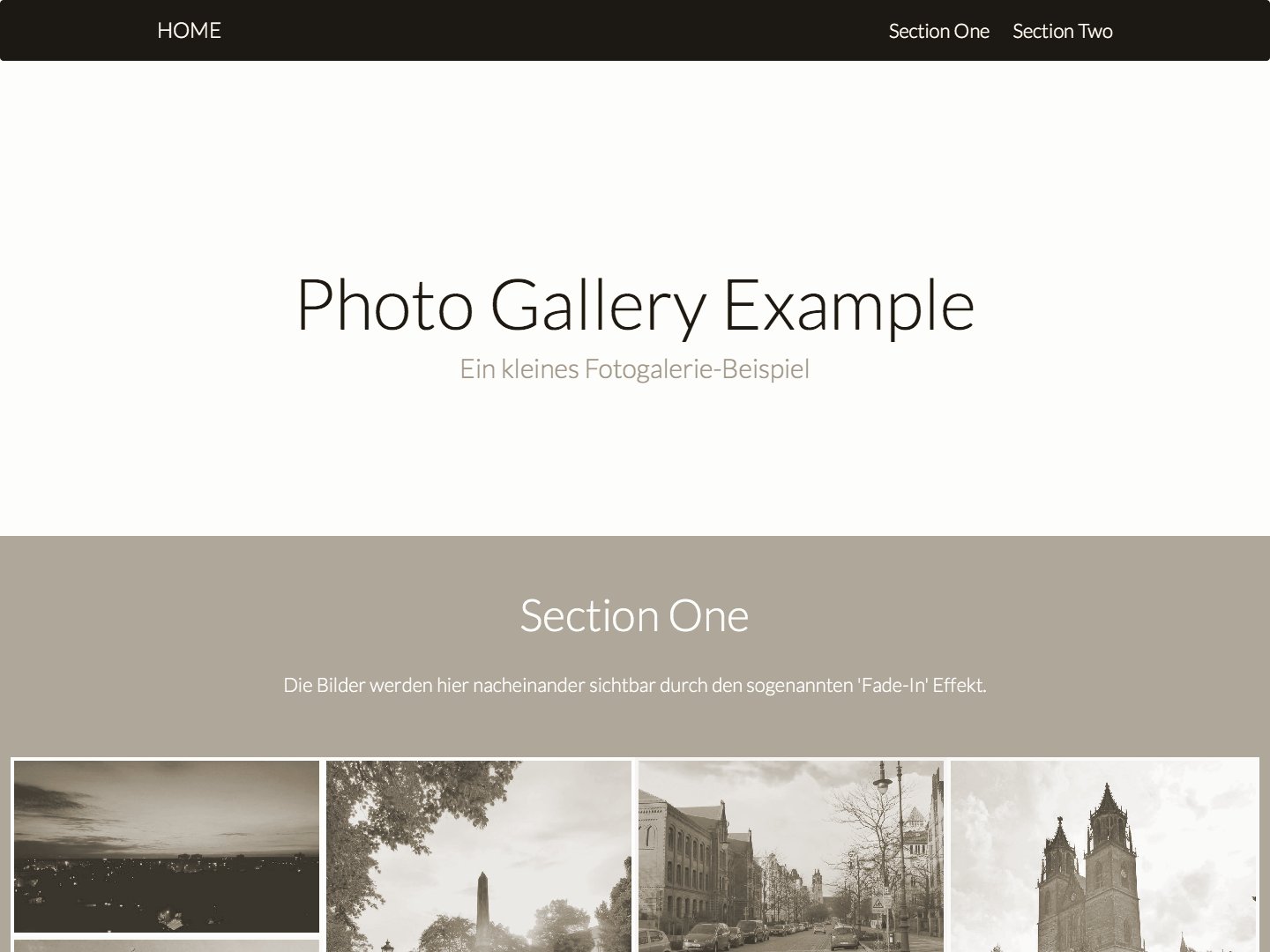 Dieser Entwurf stellt ein Beispiel für eine Fotogalerie dar. Der Fokus wurde hier darauf gelegt, die Bilder so sinnvoll wie möglich für alle Gerätegrößen anzuordnen und dabei den gesamten Platz optimal auszunutzen.
