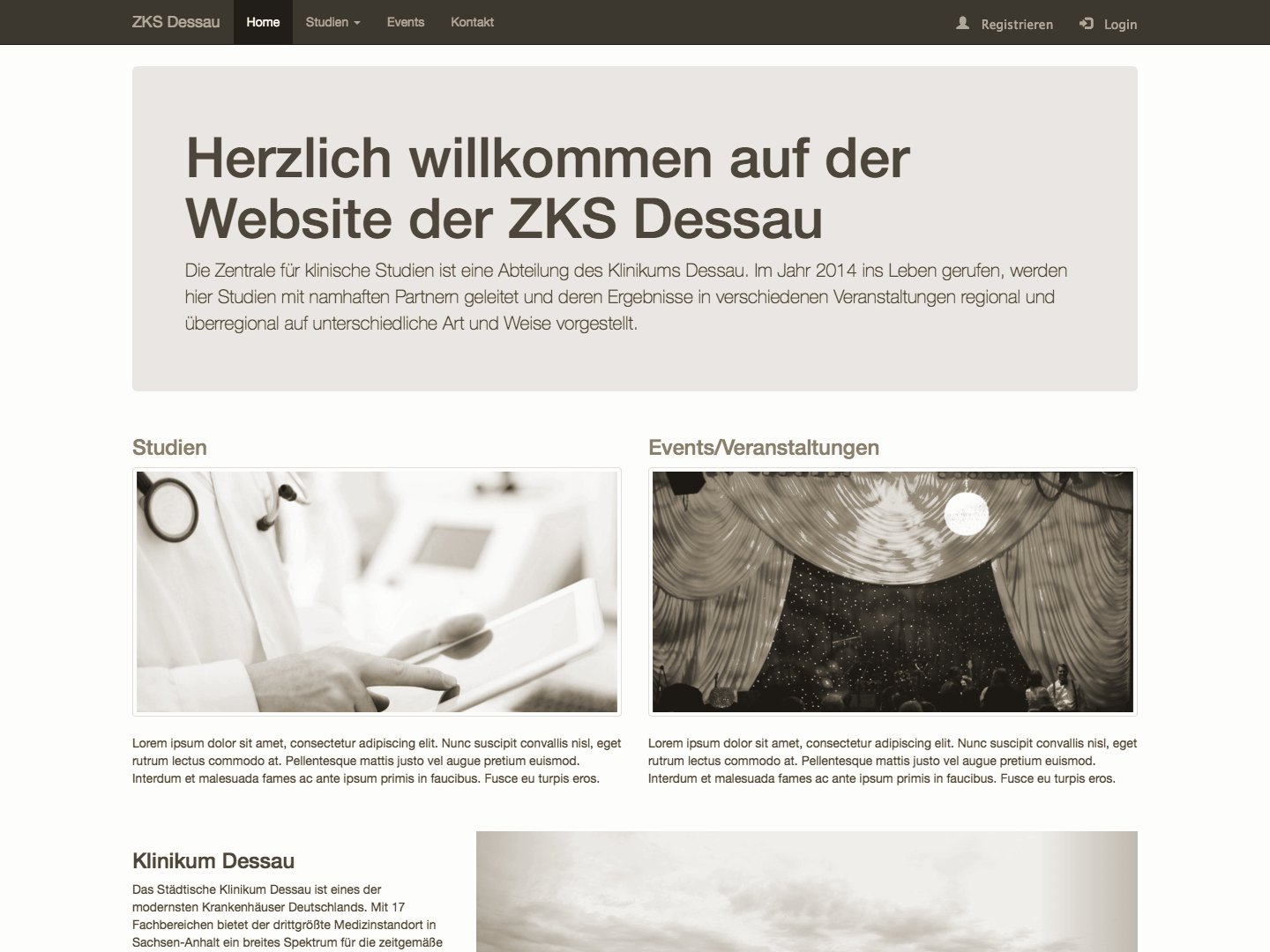 Hier sehen sie einen fertigen Entwurf für den Webauftritt einer Abteilung des Klinikums Dessau. Er entstand im Rahmen einer Semesterarbeit zum Thema 'Gestaltug von Interaktiven Systemen'.